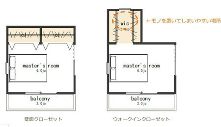 雖然這種布局相交類型A來說收納效率有所下降,但是擁有這樣一個更衣的場所能夠使得衣帽間的使用便利性大大提高。另外,在這里也可以設(shè)置熨燙衣物的空間,并在整個住宅布局中結(jié)合洗衣空間進(jìn)行布置的話更是能夠提高它的使用效率:)