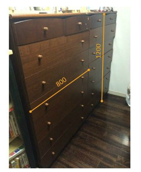 補(bǔ)充一下多屜柜,日文是簞笥,類似于中國老款式的衣櫥,收納效率非常高,在日本也很受婦女喜愛(笑)。如果是用好的木材的話,價格相當(dāng)不菲。樣子和尺寸大概是這樣的: