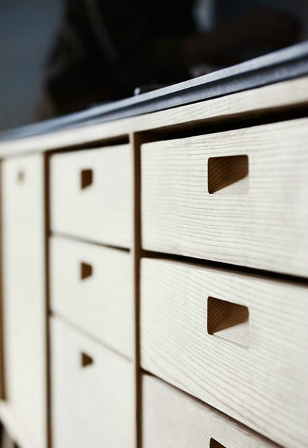 抽屜和柜子的開把手關(guān)乎著它們整體的顏值,也是畫龍點睛之筆。下面三種方式,可以讓你家柜子看上去更美:直接在在柜門上動手腳,不用附加零件;選擇一些精致的小把手絕對加分;大柜子的把手,索性做大。