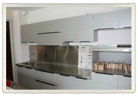 亞克力柜門,產(chǎn)地:上海、南京。亞克力早期很流行有木有,近幾年受晶鋼門和烤漆的沖擊,慢慢走下了神壇,不過(guò)依然很受歡迎!優(yōu)點(diǎn):好擦好洗,高亮,顏色花型特多。缺點(diǎn):相對(duì)于晶鋼門不耐刮!