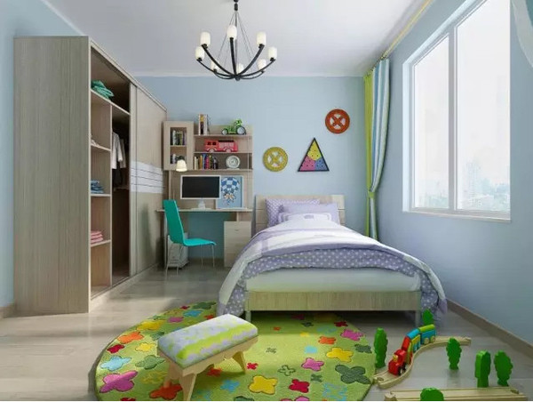 兒童房的基本色彩應(yīng)該以明亮、輕松、活潑為主,與之搭配的家具顏色應(yīng)該也是色彩鮮艷、愉悅,富有活力的,有利豐富孩子的想象力,增加情趣。天花板盡量以淺色為主,地板應(yīng)選擇舒服、溫和的材質(zhì),不宜選擇大理石和地毯,大理石太過堅硬,地毯又不利于清潔,容易藏污納垢,兒童房的活動區(qū)域也要考慮到安全問題,避免存在尖角、尖物等易傷害到兒童的物品。墻面裝飾可以有多種選擇,因為既可以選擇五彩繽紛的顏色,也可以裝修得優(yōu)雅溫馨。窗簾的顏色盡量選擇明亮的顏色,太過深沉的顏色不利于兒童的成長。
