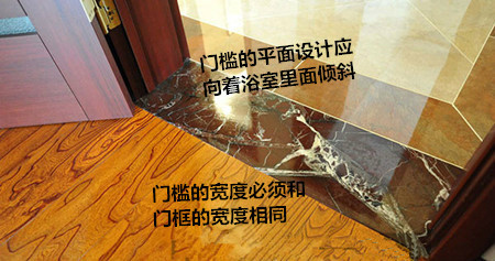 浴室門檻的設(shè)計是非常重要的,因為它能阻止浴室里面的水向外流,所以門檻的裝修設(shè)計特別需要注意的就是,門檻的平面設(shè)計應(yīng)向著浴室里面傾斜,這樣有利于排水,水不會滲入到外面去。第二個值得注意的地方就是門檻的寬度必須和門框的寬度相同,且門檻的厚度也必須要和墻壁的厚度一樣,這樣才能在鋪設(shè)地板的時候減少產(chǎn)生破口的幾率。