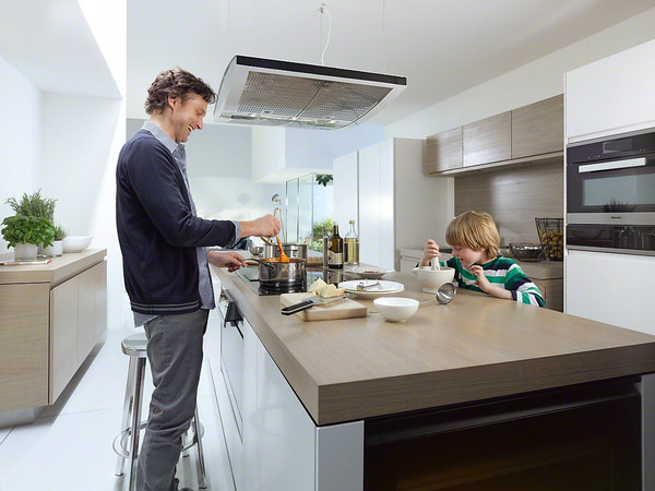 如果預(yù)算更高,可以看看喜聞樂見的Miele,比如DA5320W、DA5390W(頂吸),以及隱藏式設(shè)計、極具現(xiàn)代感的DA5000D(下圖),這三款風(fēng)力都達到了驚人的21.7m3/min。價格在2~3w不等,油煙機的預(yù)算都到了這個級別,就不要想著鐵殼子+電風(fēng)扇那種畫面了……