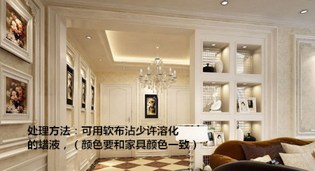 處理方法:如果家具不小心被刮傷,但未觸及漆膜以下的木質(zhì),可用軟布沾少許溶化的蠟液(顏色要和家具顏色一致),涂在漆膜傷處,覆蓋傷痕。待蠟質(zhì)變硬后,再涂一次,如此反復(fù)多涂幾次,即可將其膜傷痕掩蓋。