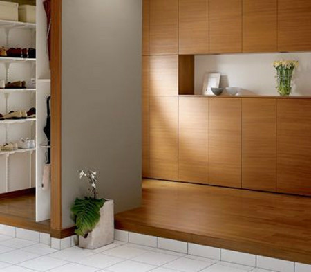 玄關(guān)的流線設(shè)計(jì):家人和客人的流線分開,并設(shè)置不同的鞋柜收納空間