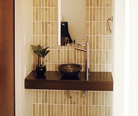 特別是對于養(yǎng)著寵物的主人來說,回家進(jìn)門能洗手也是非當(dāng)貼心的設(shè)計(jì)。在玄關(guān)設(shè)置一個有設(shè)計(jì)感的洗手池如下: