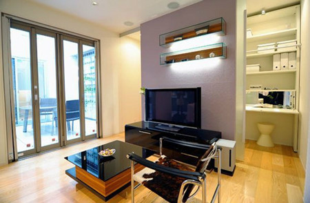 這樣,進(jìn)門的物品和客廳的各種雜物都可以非常方便的關(guān)到收納空間里面