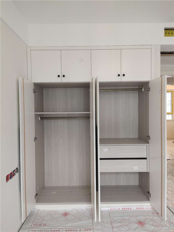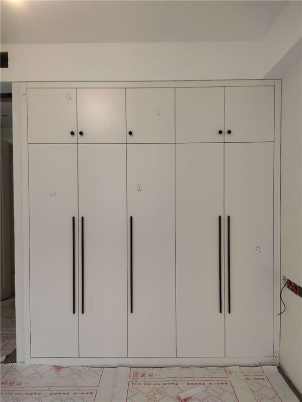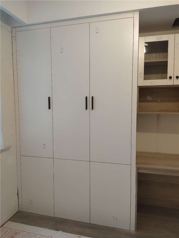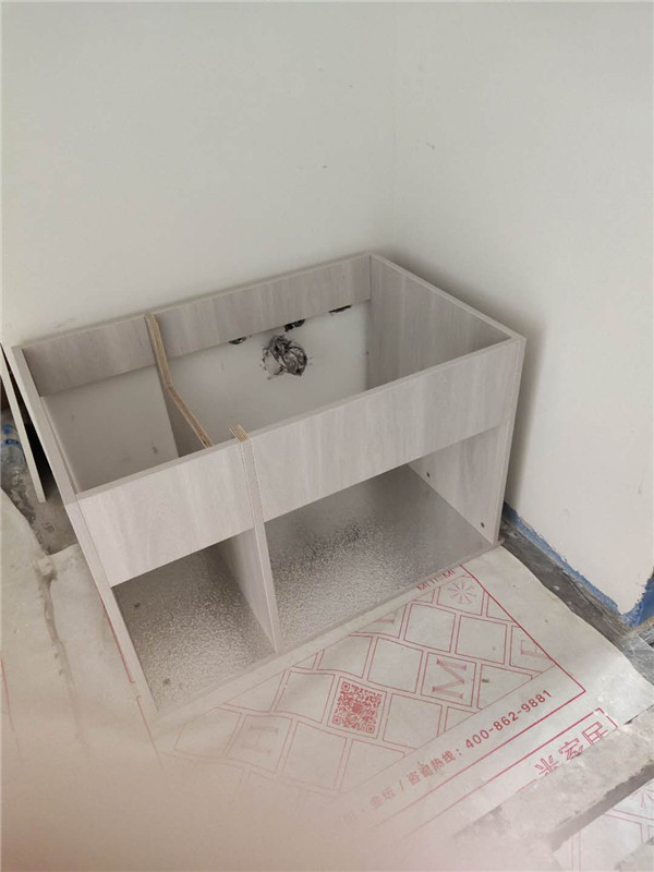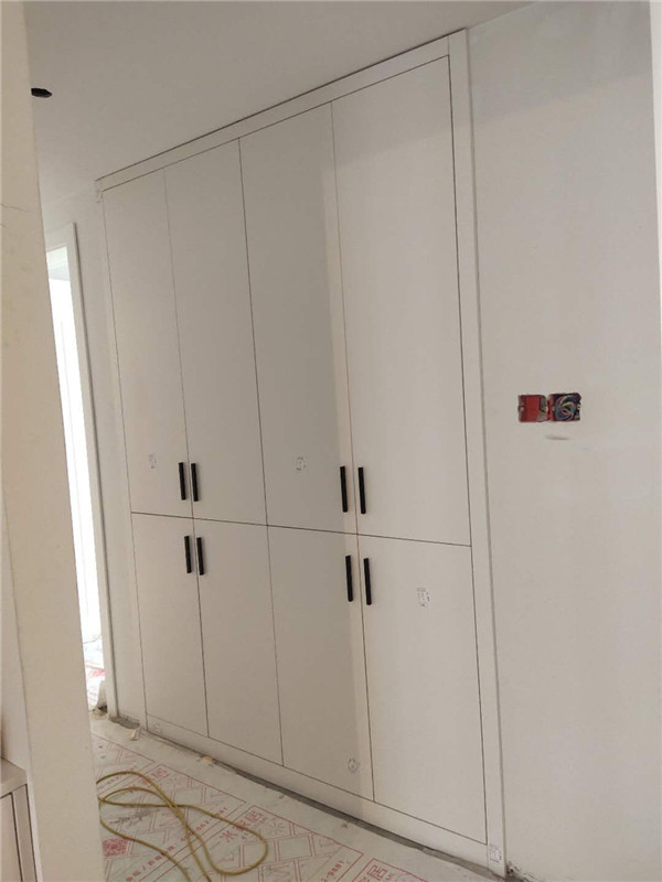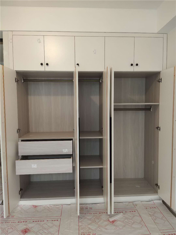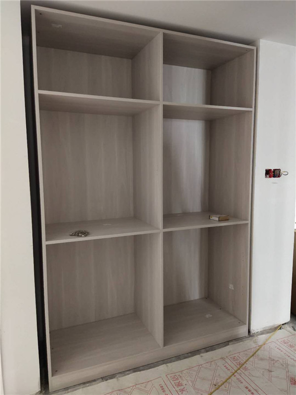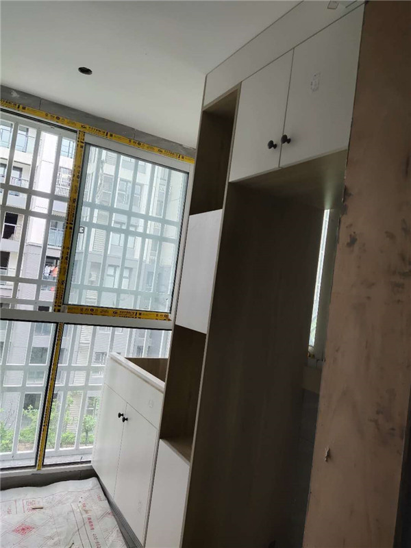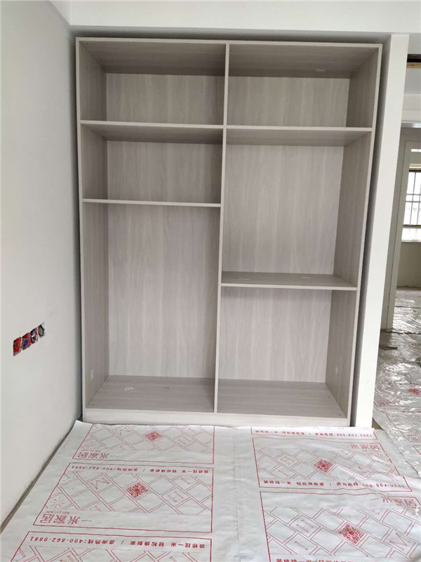 安裝兩天的效果,柜體基本拼裝完畢了,業(yè)主家柜體以淺色系為主,整體效果清爽干凈。