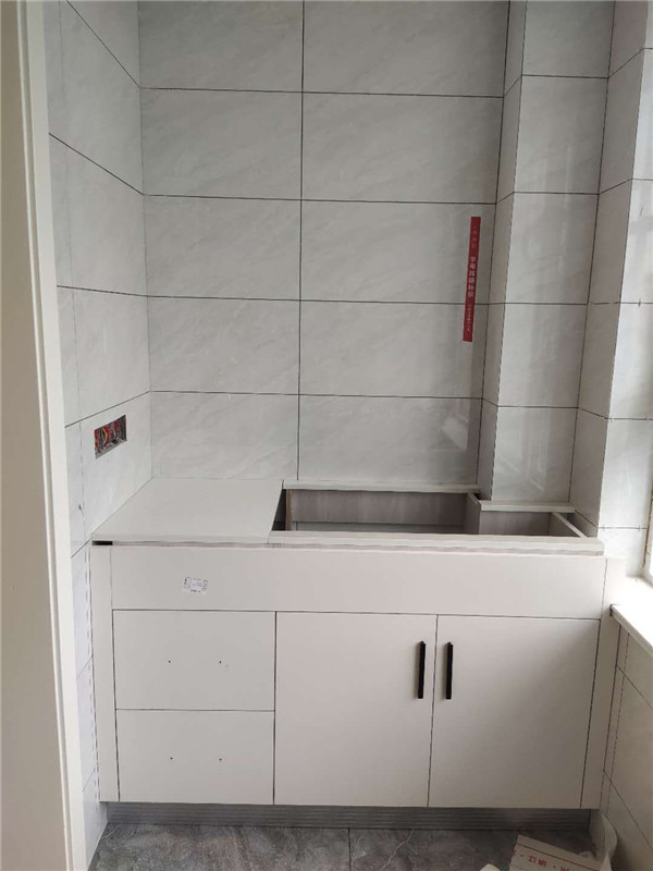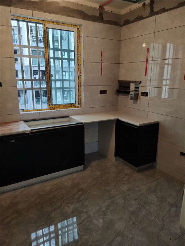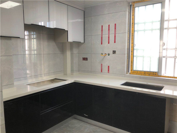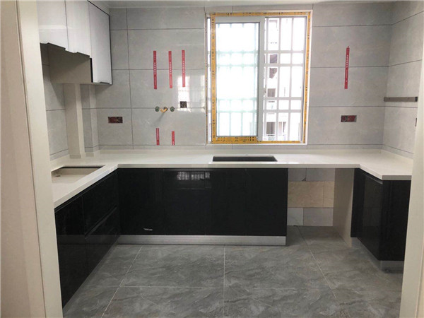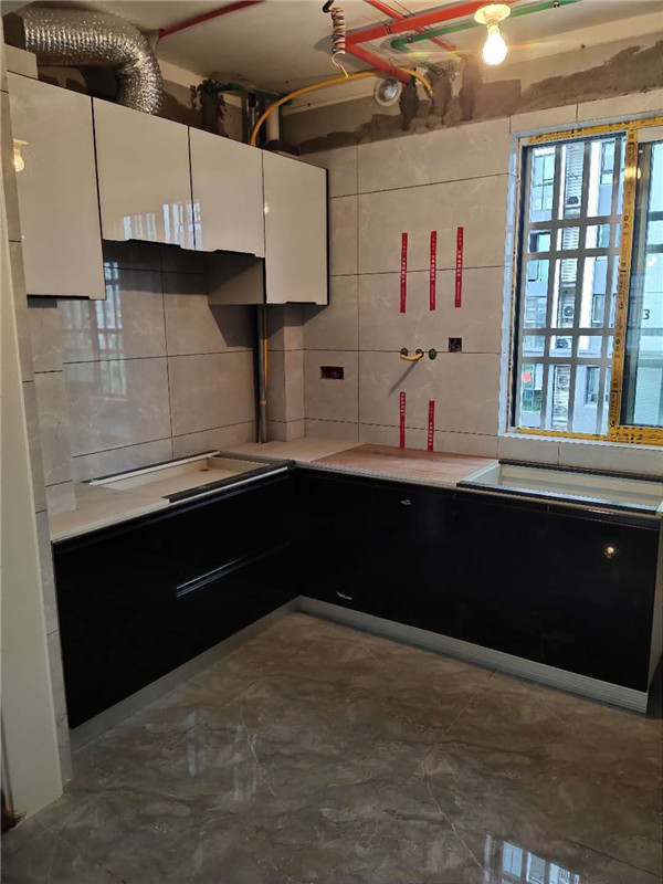 柜子都安裝好了,業(yè)主家以白色為主,配黑色拉手簡單,清爽。期待后期的整體效果。
