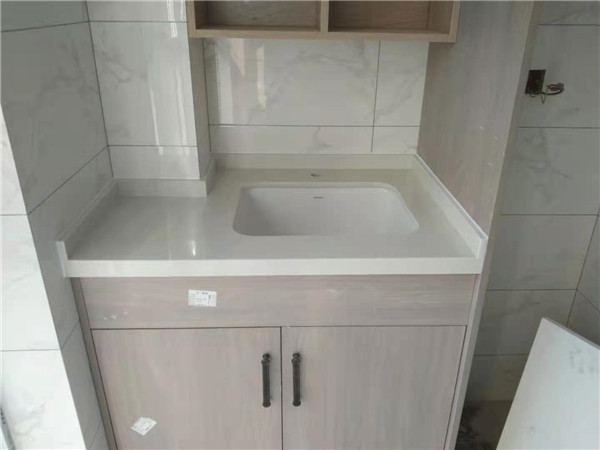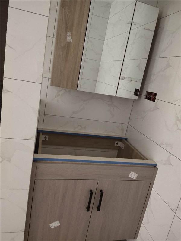 浴柜臺盆放置在現(xiàn)場,后期臺面安裝需用到。柜子安裝好后進(jìn)入臺面測量環(huán)節(jié),臺面量完后一個(gè)星期內(nèi)送貨并安裝。