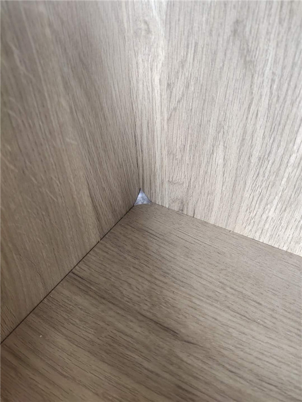 沒有爆邊的情況,這樣后面封出來的邊更圓滑,全自動機(jī)器開料尺寸更精準(zhǔn)。插槽背板離墻面1.7公分,