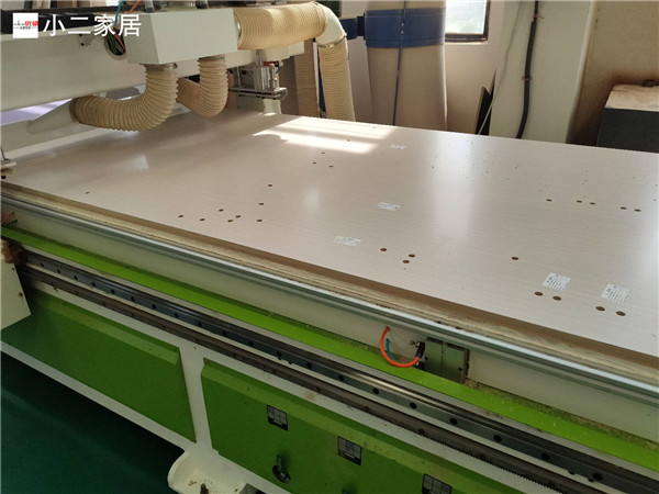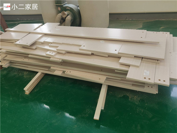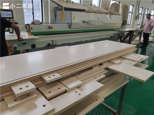 封邊完畢,打孔打包同時進行,我家柜子每塊板都是整個打包起來的,以防運輸過程中劃傷或者磕碰到,
