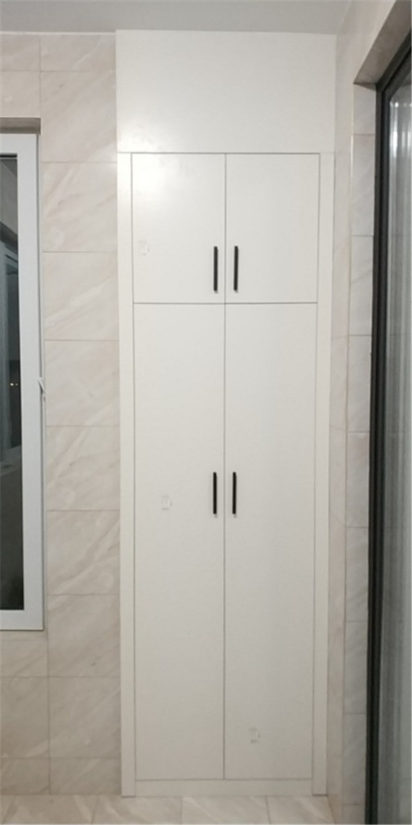 業(yè)主家采用的是兔寶寶板材,柜體顏色是星光松柏,門板顏色是暖白色。門板加的通長拉直器減少了后期門板變形的可能性。