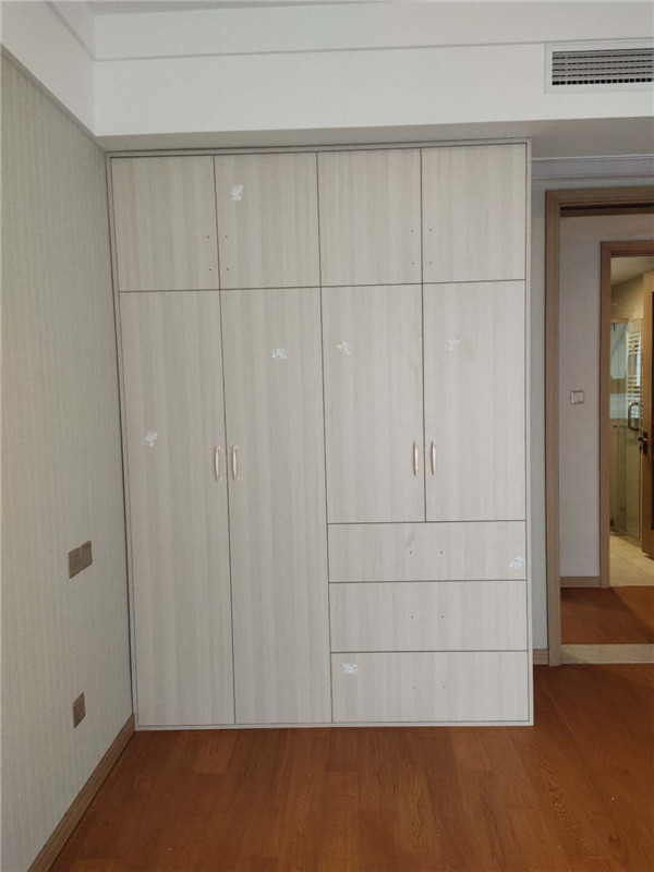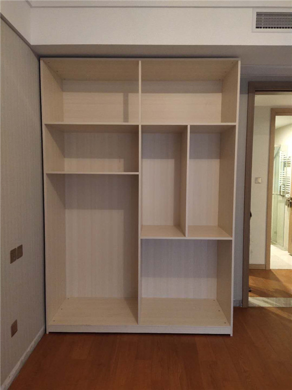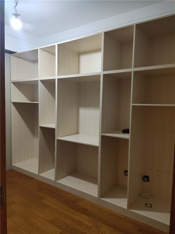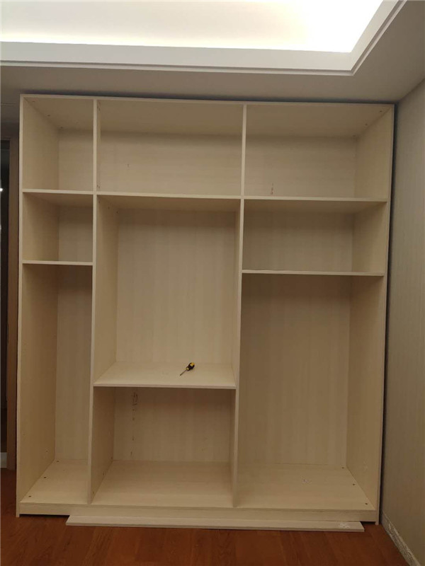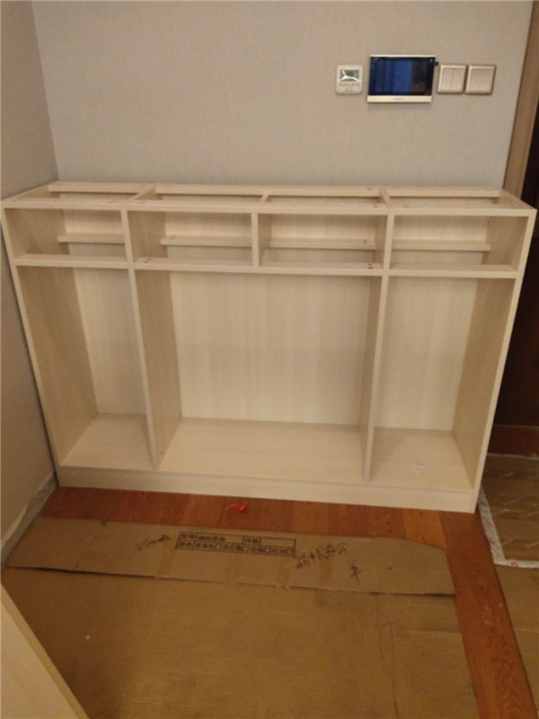 柜體差不多拼裝完畢,豎起來了,業(yè)主家柜體選擇的淺色系,整體效果清爽干凈,期待柜門安裝后的效果。