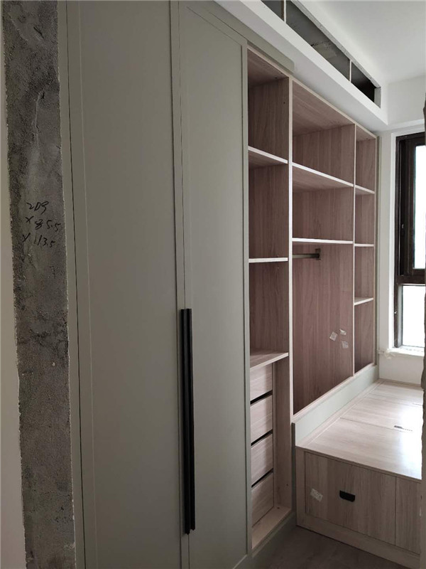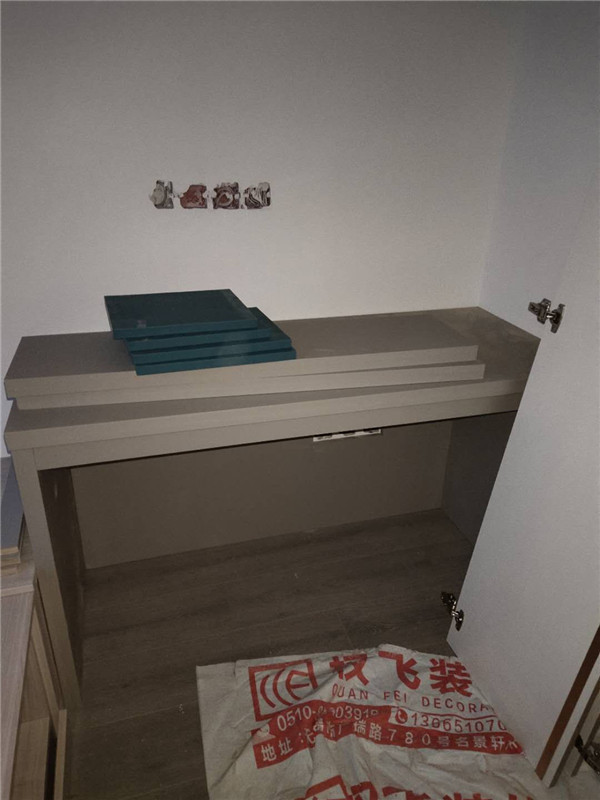 之前有點售后,現(xiàn)在都處理好了,業(yè)主家櫥柜鞋柜采用的模壓門,小房間采用的多層板大板移門,