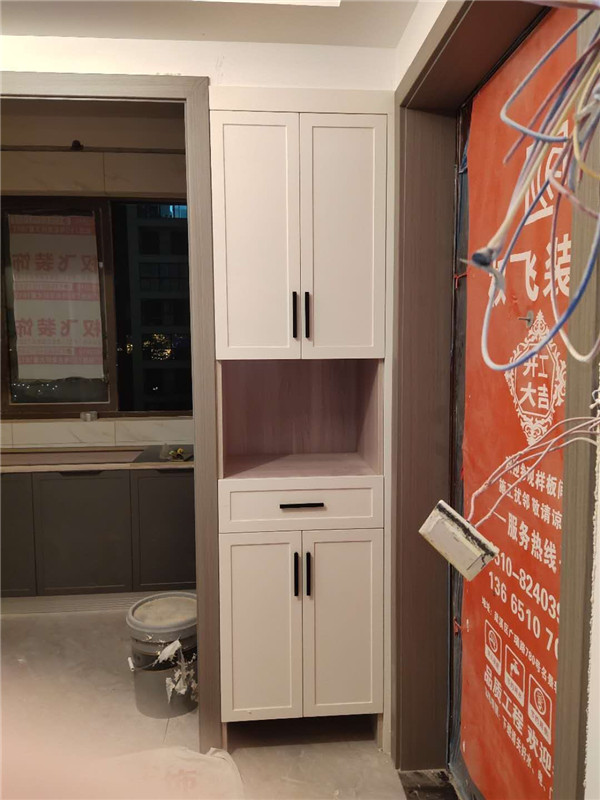 柜體基本拼裝完畢啦,業(yè)主家柜體選的同一種顏色,整體效果清爽干凈,顯得不那么雜亂。