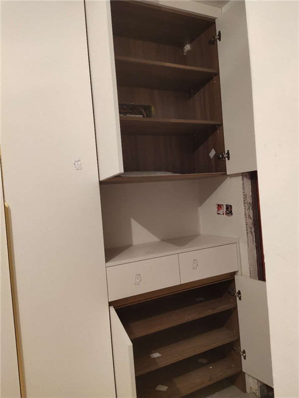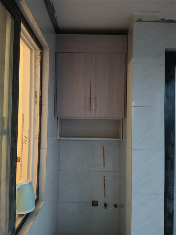 陽臺(tái)的吊柜,高柜,活動(dòng)層板孔塞,防塵角都安排上了,后期打理起來也比較方便。