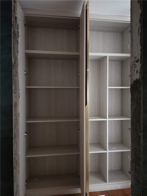 防止使用時(shí)間常出現(xiàn)柜體發(fā)霉的現(xiàn)象。拆好的板師傅都整整齊齊放在墊板上,沒有高矮不齊的現(xiàn)象,