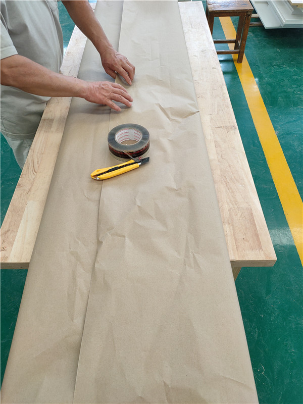封邊完畢,已進(jìn)入打包環(huán)節(jié)啦!柜門師傅會用柏油清洗劑全部擦拭一遍,以保證裝到客戶家整潔美觀。