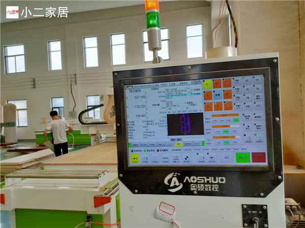 開始制作啦!專業(yè)設備裁板,板材使用平安樹實木多層板E0級制作,有高級的藍光防偽標識哦,