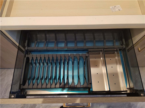 廚房配的定制款拉籃三件套,采用的諾米鉸鏈,防塵角跟活動層板孔塞也都安排上了。