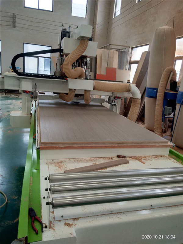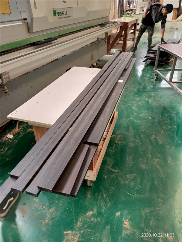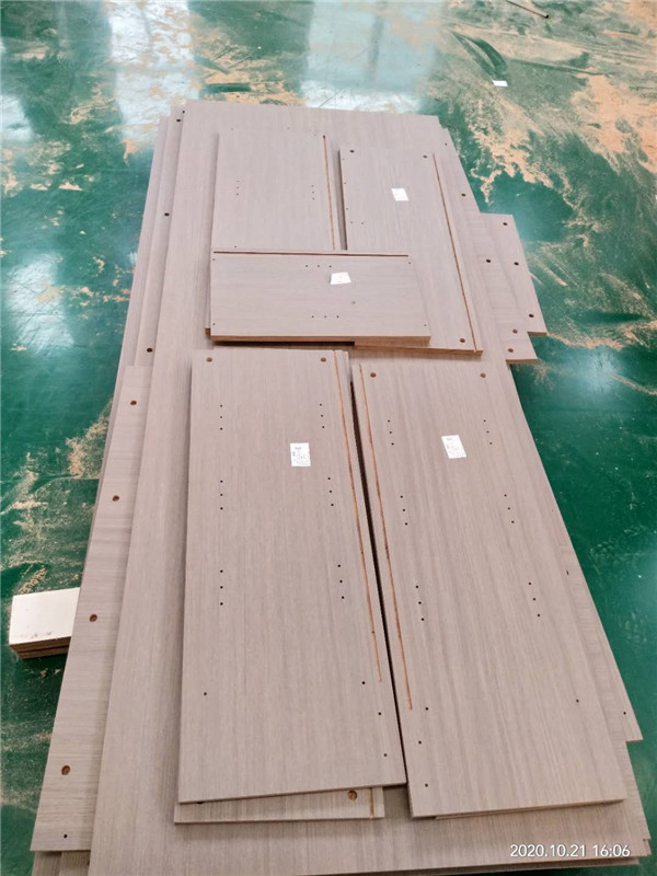開始制作啦!專業(yè)設備裁板,板材使用平安樹實木多層板E0級制作,有高級的藍光防偽標識哦,邊口都是直的,沒有爆邊的情況,