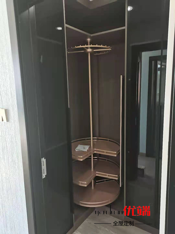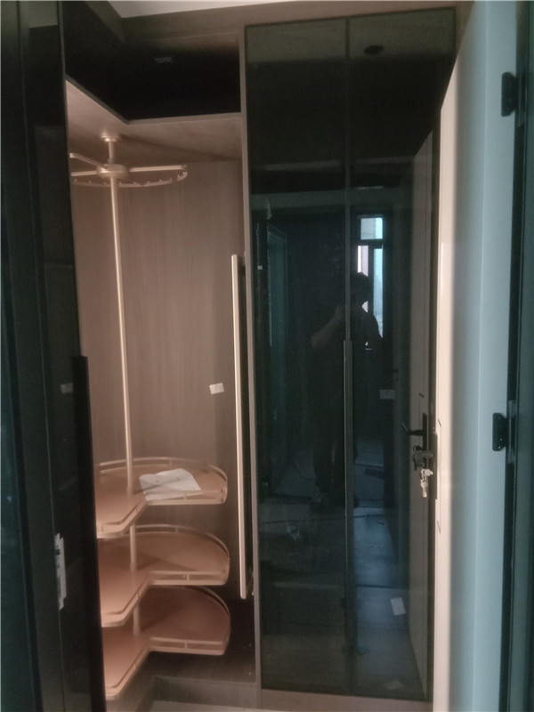 柜子都已安裝好啦,先來看看衣柜吧,轉(zhuǎn)角放了一個(gè)諾米旋轉(zhuǎn)掛衣桿,到時(shí)候疊放衣服也不會(huì)那么亂了,榻榻米擁有強(qiáng)大的收納空間,再也不愁東西多沒地方放了?;也2AчT呈現(xiàn)出一種通透的感覺,整體顏值還是蠻高的!