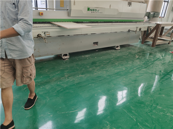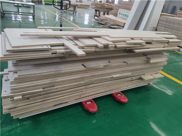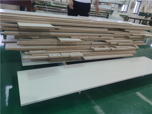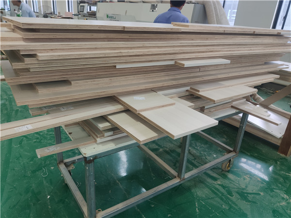 開始制作啦!專業(yè)設(shè)備裁板,板材使用平安樹實木多層板E0級制作,有高級的藍光防偽標識哦,邊口都是直的,沒有爆邊的情況