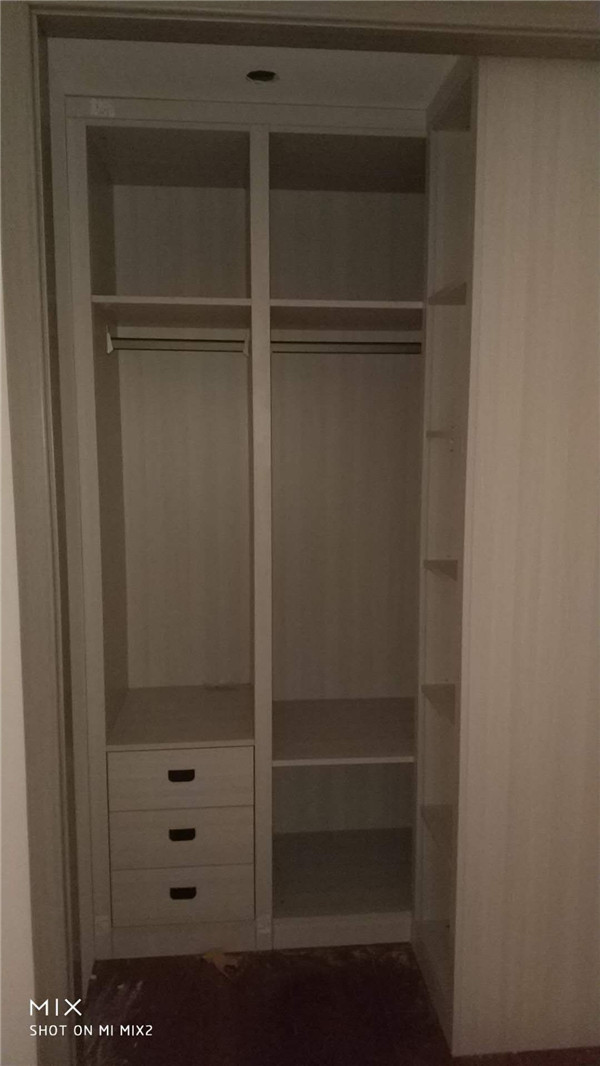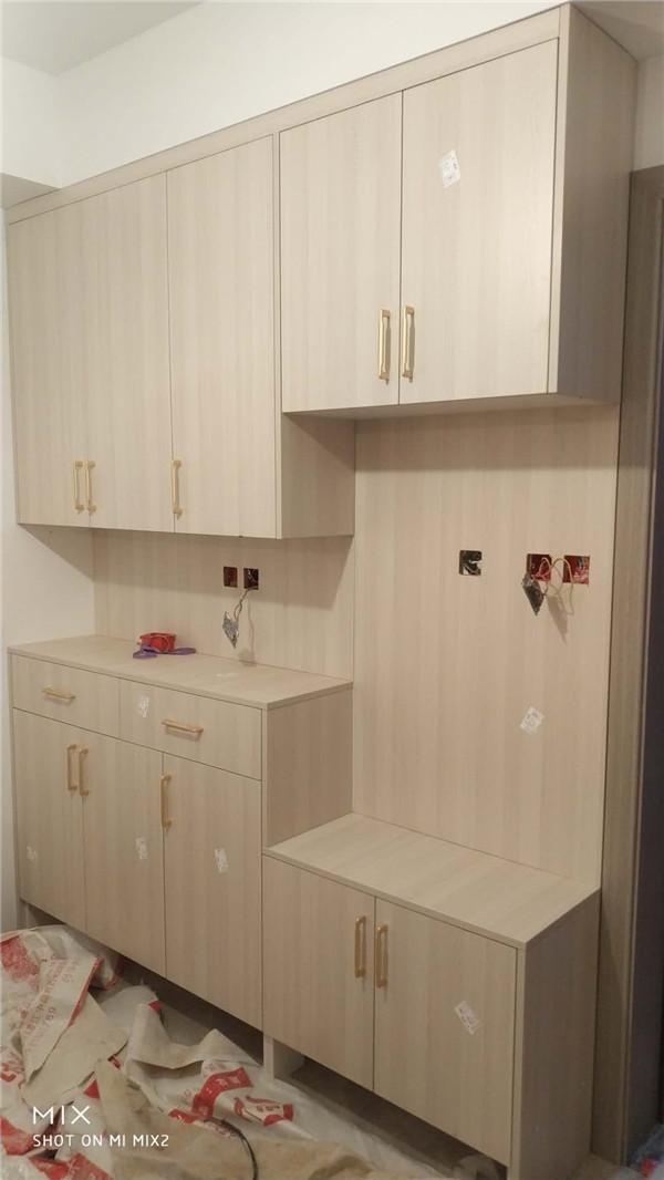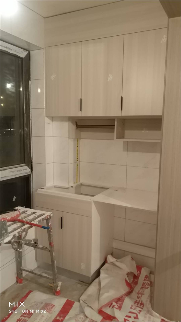 柜子已經(jīng)安裝完畢了,門板以淺色調(diào)為主,整體效果清爽干凈,后期軟裝也比較好搭配