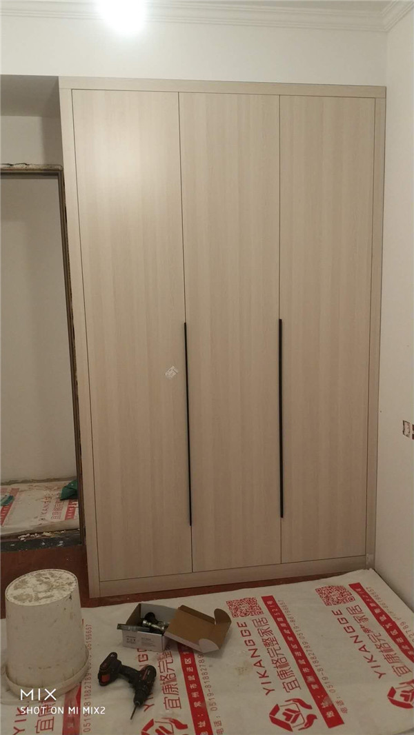 部分封邊完畢,已進入打包環(huán)節(jié)。柜門師傅會用柏油清洗劑全部擦拭一遍,以保證裝到客戶家整潔美觀。