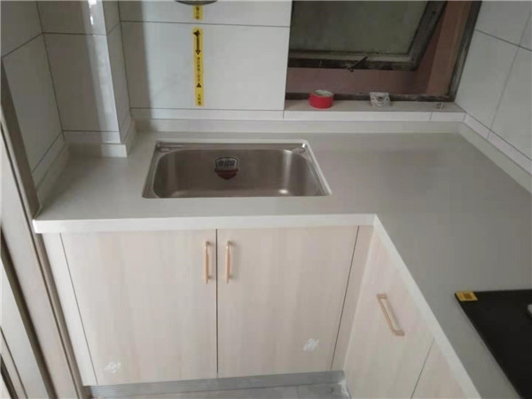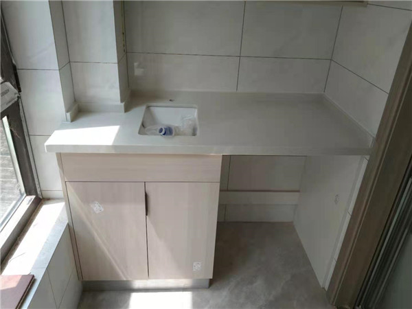 臺面安裝完畢,業(yè)主家選的白色臺面,采用的臺下盆,整體清爽干凈。