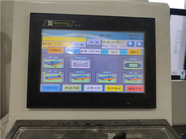 膠水采用美國波士熱熔顆粒膠,夏天溫度比較高,當(dāng)設(shè)備溫度達(dá)到160℃就好開始封邊了。我家不管大小板都是四面封邊哦!