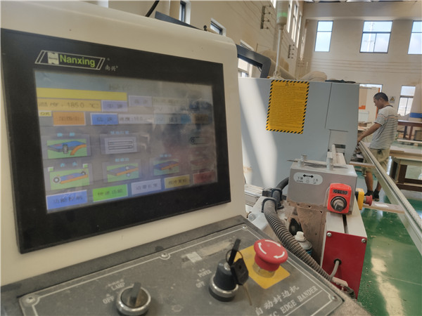 膠水采用美國(guó)波士熱熔顆粒膠,當(dāng)設(shè)備溫度達(dá)到180℃以上就好開始封邊了。