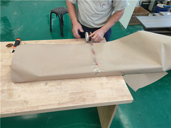 封邊完畢啦,已進(jìn)入打包環(huán)節(jié)。柜門師傅會(huì)用柏油清洗劑全部擦拭一遍,以保證裝到客戶家整潔美觀。