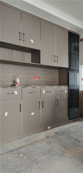 【小二跟單3128】白馬公館 晶鋼門、灰玻玻璃門+實(shí)木多層板、松木刨花板柜體櫥柜生產(chǎn)中
