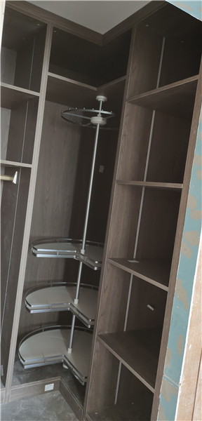 接下來看看衣柜吧,拐角地方放了一個(gè)諾米的旋轉(zhuǎn)掛衣桿,小孩房間做了一個(gè)轉(zhuǎn)角書桌,合理利用了空間。