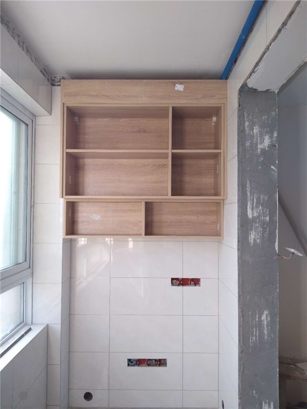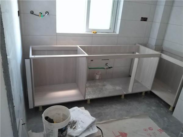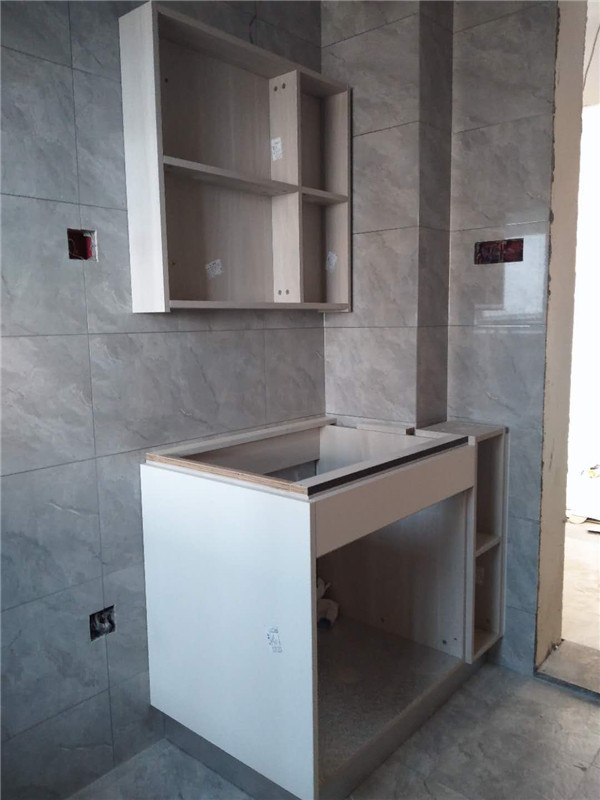 浴柜臺(tái)盆放置在現(xiàn)場(chǎng),后期臺(tái)面安裝需用到。柜子安裝好后進(jìn)入臺(tái)面測(cè)量環(huán)節(jié),臺(tái)面量完后一個(gè)星期內(nèi)送貨并安裝。