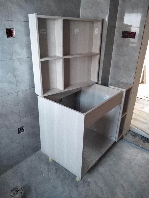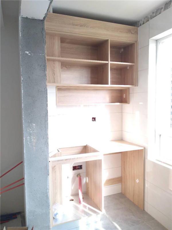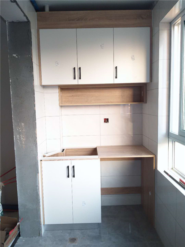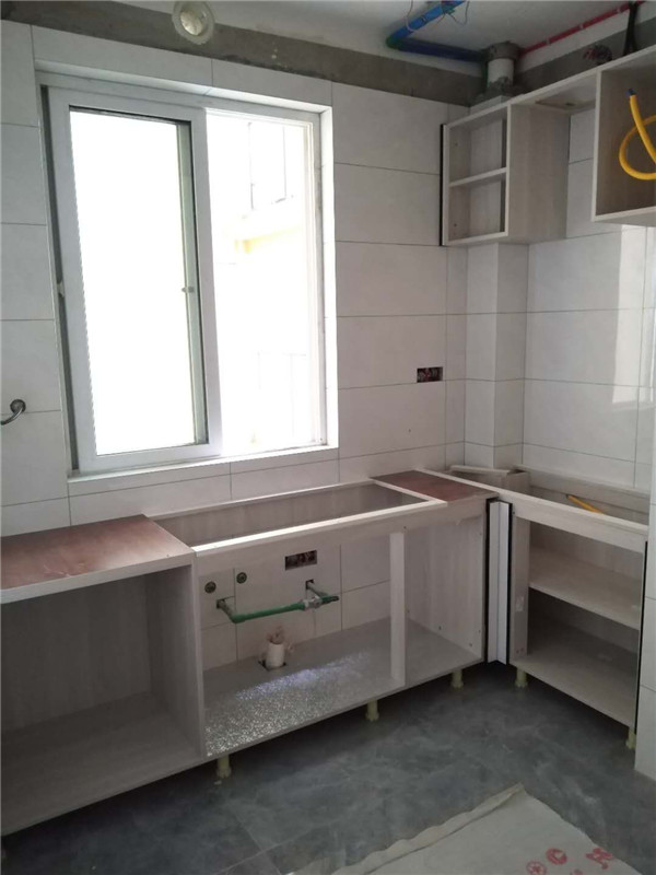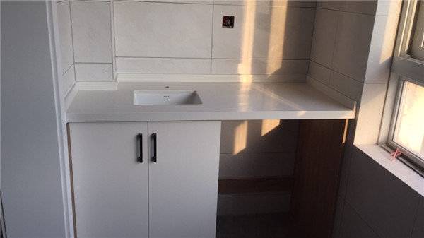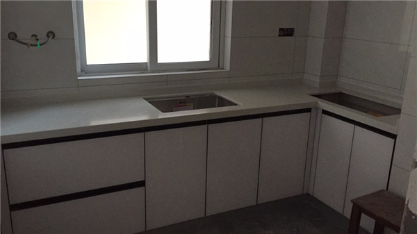 臺(tái)面安裝好了,配上白色門板,看上去干凈又清爽。