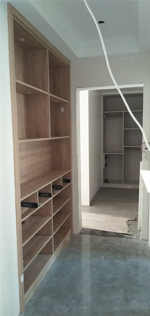 柜體安裝完畢啦,從柜子內(nèi)部結(jié)構(gòu)可以看出,業(yè)主還是多以掛衣服為主,結(jié)構(gòu)分明,后期收納起來肯定很方便。