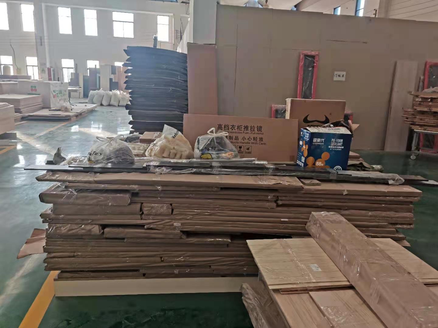 已經(jīng)生產(chǎn)完的板材堆放在一起