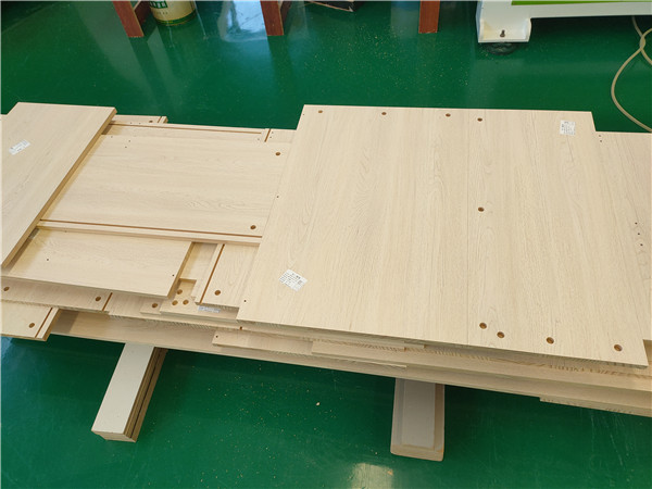 開始制作啦!專業(yè)設備裁板,板材使用平安樹實木多層板E0級制作,有高級的藍光防偽標識哦,