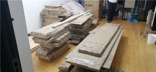 我家柜子每塊板都是整個打包起來的,以防運輸過程中劃傷或者磕碰到,跟板材下面墊板一個原理哦!
