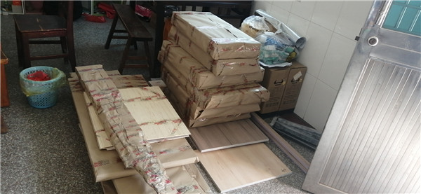 拆好的板師傅都整整齊齊放在墊板上,沒有高矮不齊的現(xiàn)象,板下面都?jí)|了墊板的哦,