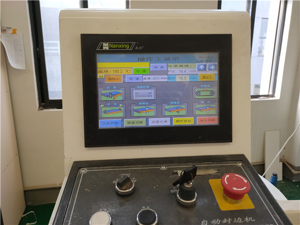 膠水采用美國波士熱熔顆粒膠,夏天溫度比較高,當(dāng)設(shè)備溫度達到160℃以上就好開始封邊了。