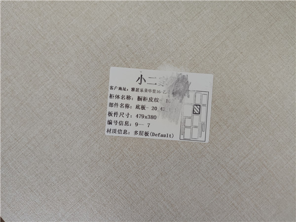 我家不管大小板都是四面封邊哦!每塊板上都貼有小標簽,方便后期安裝師傅安裝。