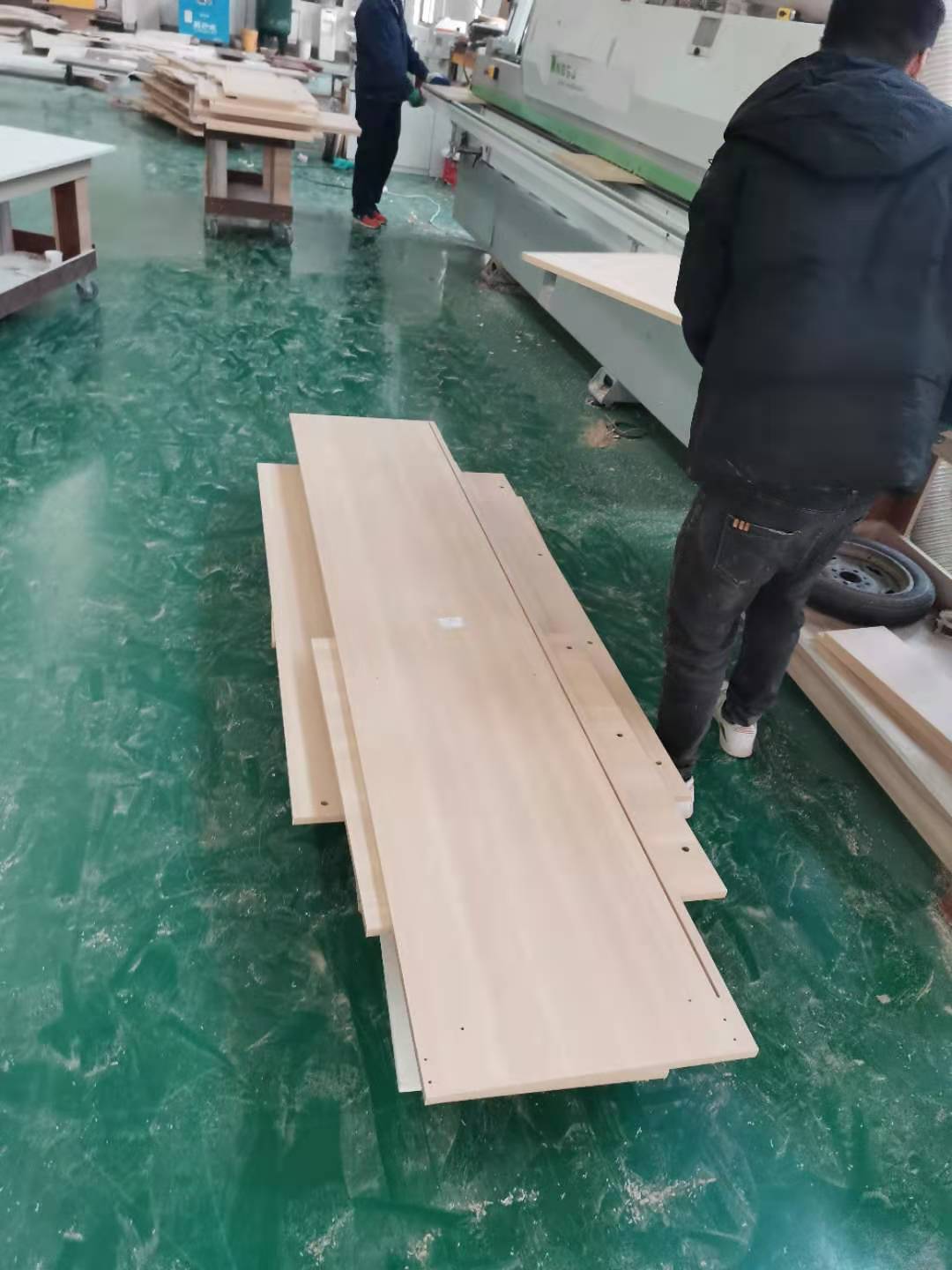 開始封邊啦,用的是1.0厚度的封邊條,膠水采用的是波士熱熔顆粒膠。板上都有小標簽哦