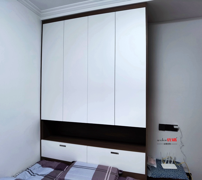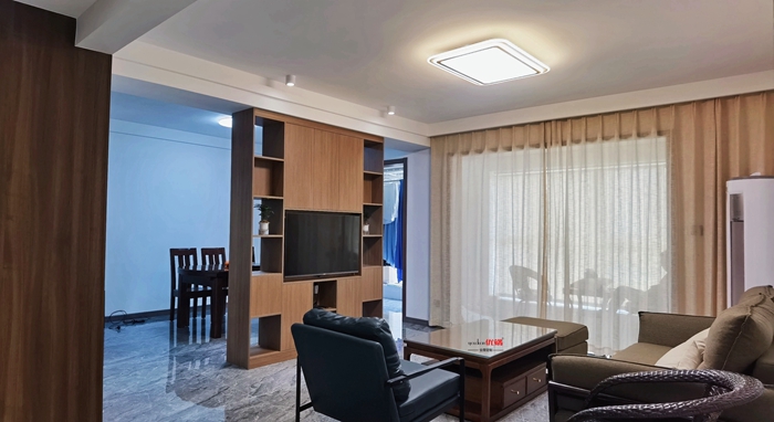 完工啦,來看看現(xiàn)場效果吧。客餐廳設(shè)計(jì)的隔斷即是電視背景又可收納,兼具美觀和使用。顏色森德時(shí)光,沉穩(wěn)中帶著時(shí)尚。護(hù)墻板和整體色調(diào)無不彰顯主人沉穩(wěn)內(nèi)斂的氣質(zhì)。臥室櫥柜采用平安樹實(shí)木多層板愛爾蘭胡桃色,又增添了古韻。