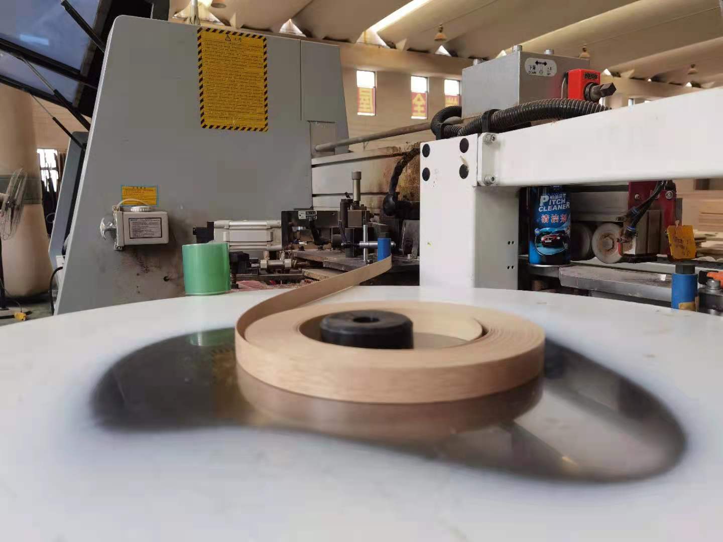 封邊采用的是1.0厚的pvc封邊條,方便前口倒圓弧,整體效果即美觀又不容易磕碰到。膠水采用美國波士熱熔顆粒膠,當(dāng)設(shè)備溫度達到180℃以上就好開始封邊了。我家不管大小板都是四面封邊哦!每塊板上都貼有小標(biāo)簽,方便后期安裝師傅安裝。