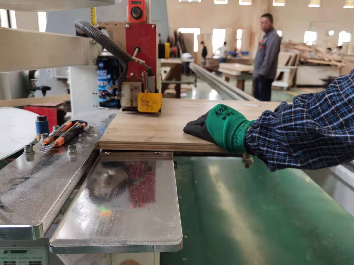 開始制作啦!專業(yè)設(shè)備裁板,邊口都是直的,沒有爆邊的情況,這樣后面封出來的邊更圓滑,全自動機器開料尺寸更精準(zhǔn)。插槽背板離墻面1.7公分,防止使用時間常出現(xiàn)柜體發(fā)霉的現(xiàn)象。拆好的板師傅都整整齊齊放在墊板上,沒有高矮不齊的現(xiàn)象,板下面都墊了墊板的哦,第一:防止地面有東西劃傷或者磕碰到板面,第二:防潮