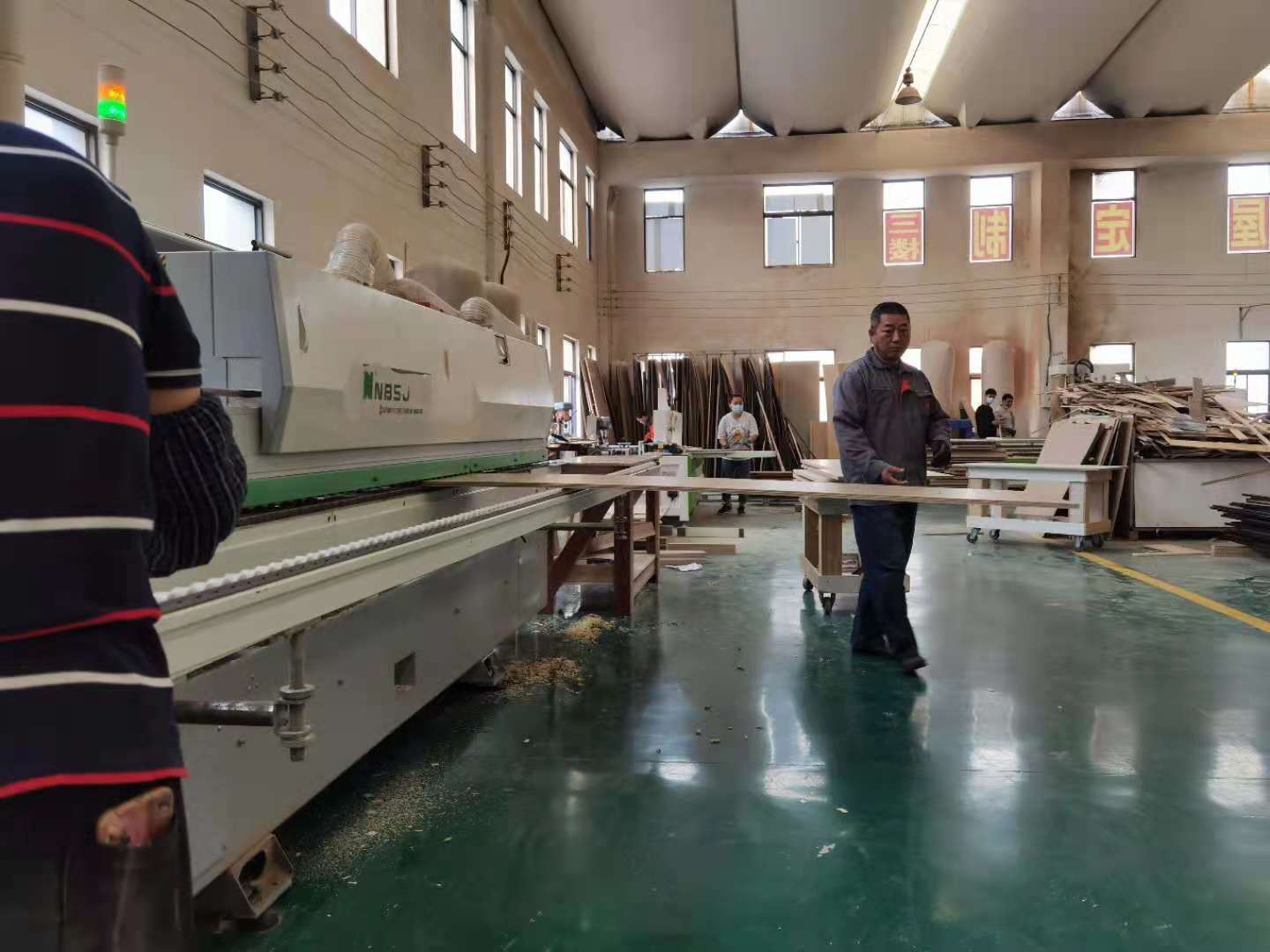 門板抽面倒角中。